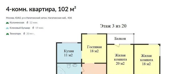 3-к кв. Москва Нагатинская наб., 40А (102.0 м²)