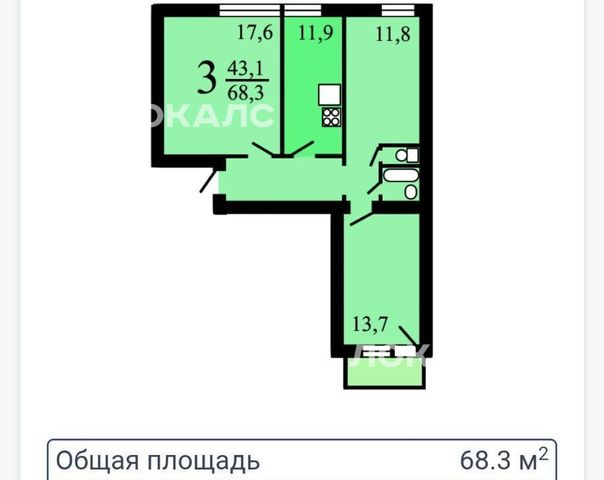 3-к кв. Москва Нагорная ул., 15К5 (68.0 м²)