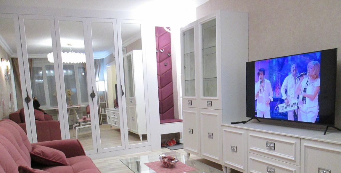 Кухонный гарнитур встроенный ,столешница искусственный камень .индукционная плита ,посудомоечная машина ,холодильник ,стиральная машина автомат ,кондиционер ,свч ,установленна система антипротечка .Диван еврокнижка,вместительный зеркальный шкаф на всю стену ,с подстветкой "умный дом ",телевизор ЖК ,спальный гарнитур ,шкафы ,диван книжка ,рабочий стол .Комнаты смежно изолированные ," хозяйская" спальня,полноценная гостинная ,и или кабинет или детская на выбор .Полы комбинированные - прихожая и кухня и ванна -плитка с подогревом ,в комнатах ламинат ,стена художественная графика,окна на две стороны качественные стеклопакеты .Санузел совмещенный ,проточный бойлер ,импортная дорогая сантехника ,подогрев пола .Балкон застекленный ,вид на "Кант " ,места для хранения вещей .подогрев пола .Собственница хорошая ,ждет Семью ответственную добросовестную , если с 1 ребенком то школьного возраста ,или двух -трех женщин родственниц. Мужчин ,или несколько мужчин собственник не берет. .Собственник готов обсуждать ( с увеличением цены ) если у нанимателя будет маленькая воспитанная комнатная собачка, других животных никаких не берет( у собственника аллергия на кошачью шерсть ) . Регистрацию по месту пребывания собственник не делает . Аренда только от 11 месяцев .Окна с балкона видом на парк, горнолыжные трассы Кант. В доме капитальный ремонт ,подъезд чистый