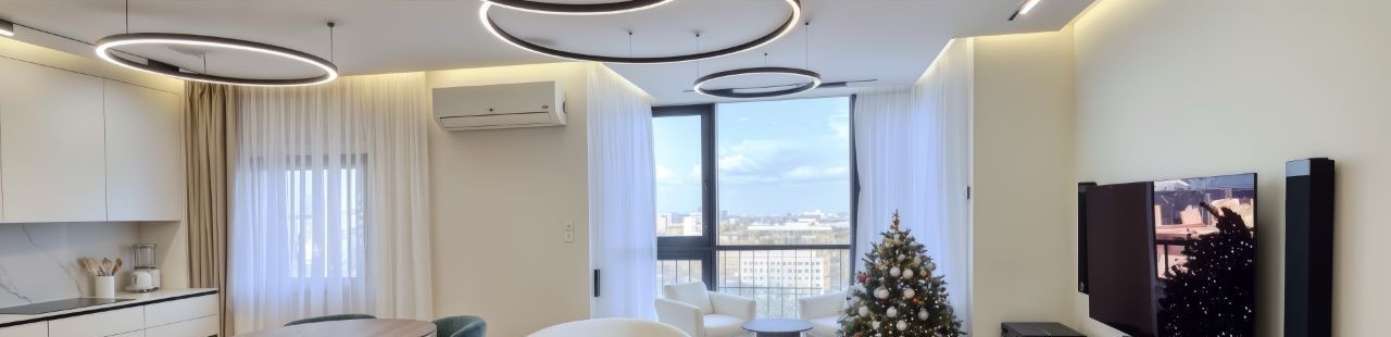 Сдаётся просторная 3-комнатная квартира 105 м² с дизайнерским ремонтом на 15 этаже современного дома. Высокие потолки 3,2 м и большие окна создают ощущение света и пространства.