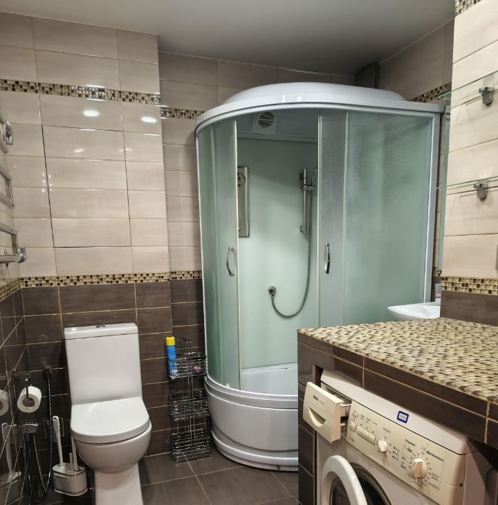 Квартира полностью мебелирована, двухкамерный холодильник, телевизор, стиральная машина, кондиционер, кухонный гарнитур, микроволновка, большие шкафы для хранения, 3 спальных места.