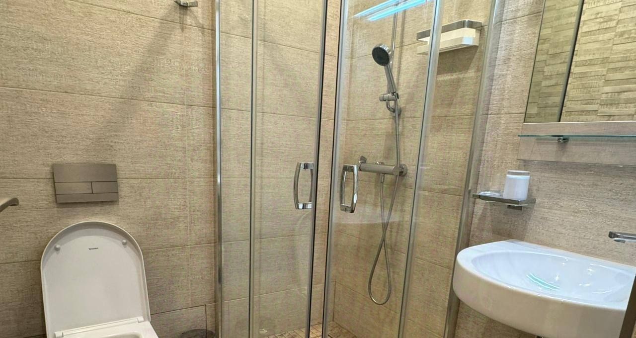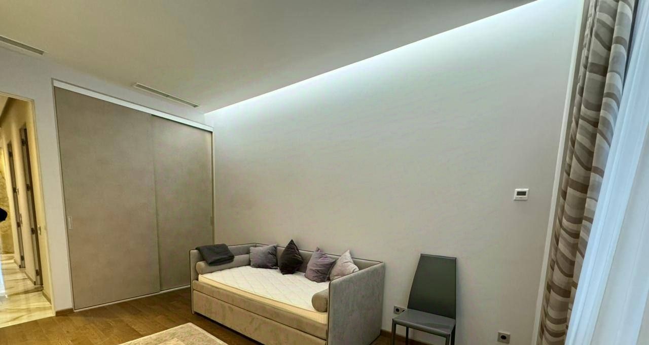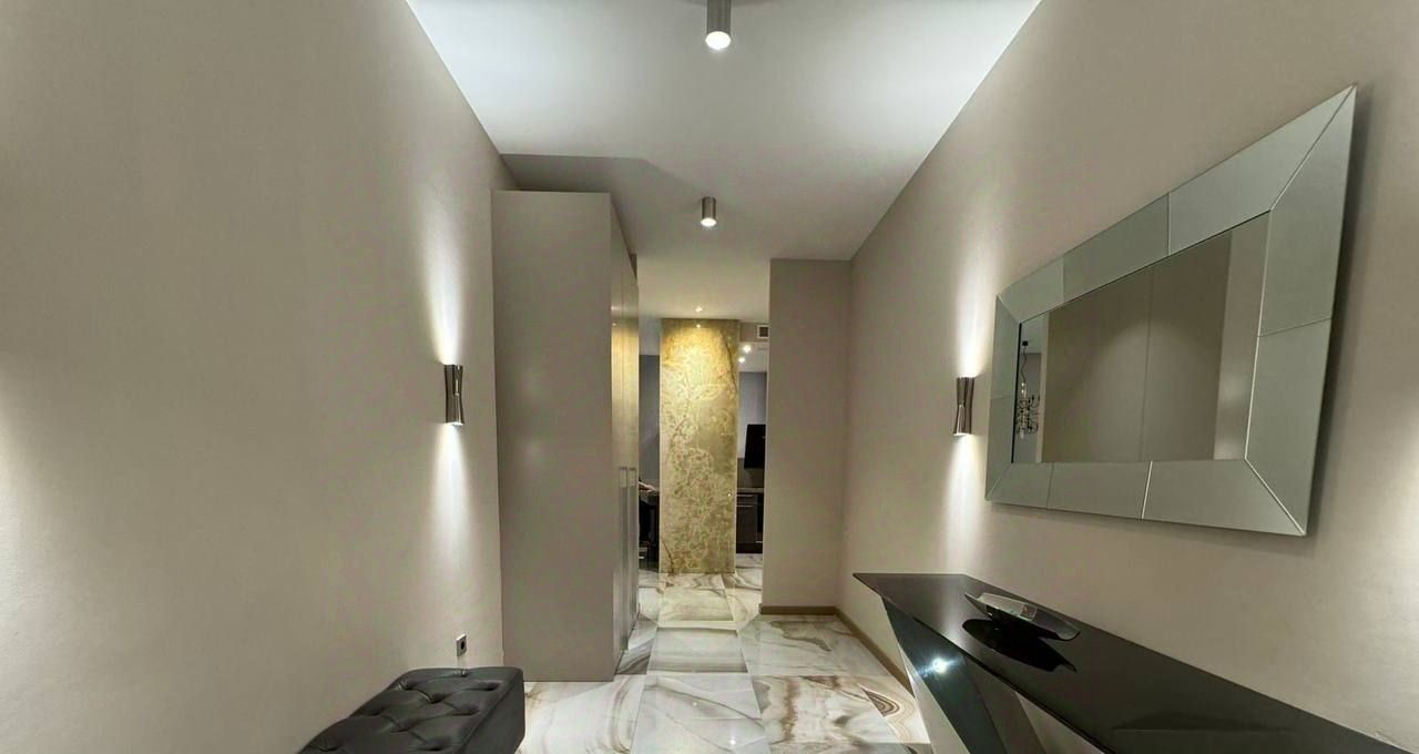 Общая площадь составляет 100 кв.м., в квартире 3 комнаты, 2 санузла, постирочная. В отделке использовались лучшие материалы. Квартира полностью мебелирована и готова к проживанию.