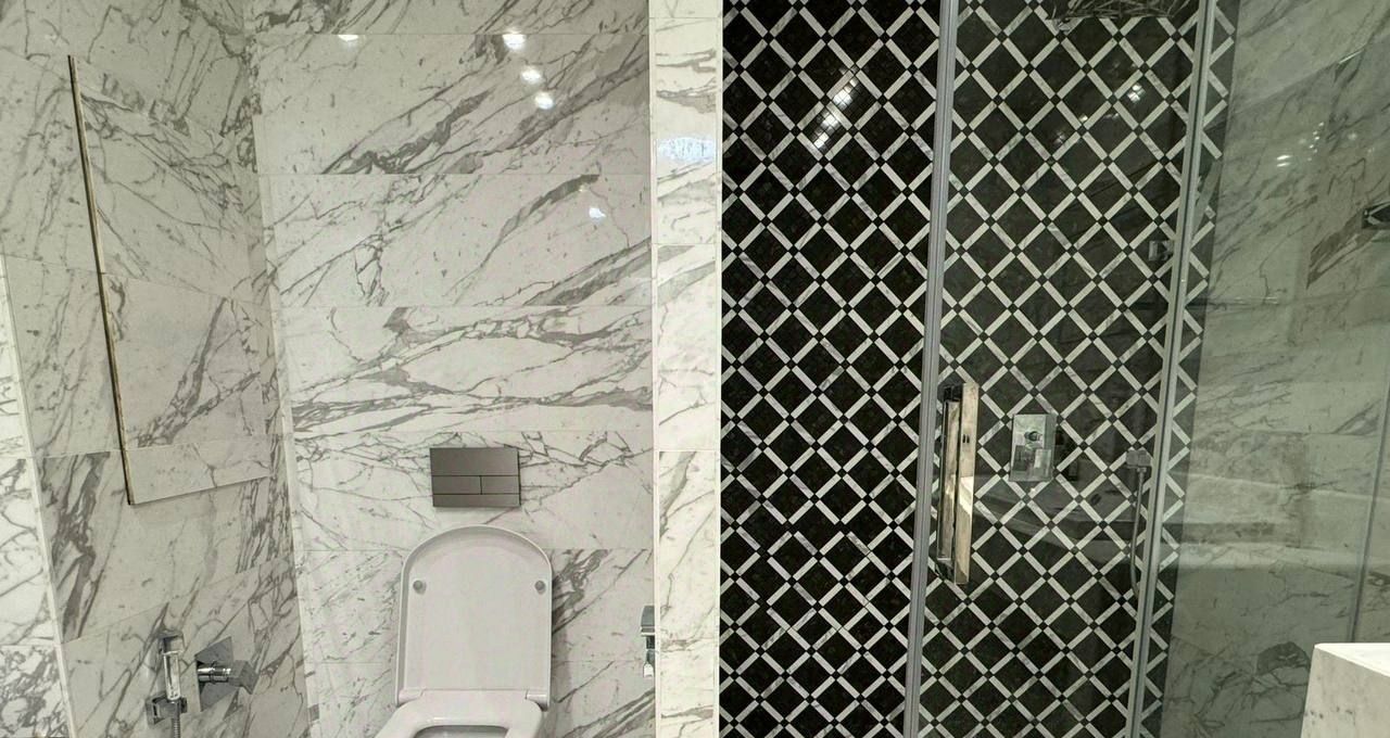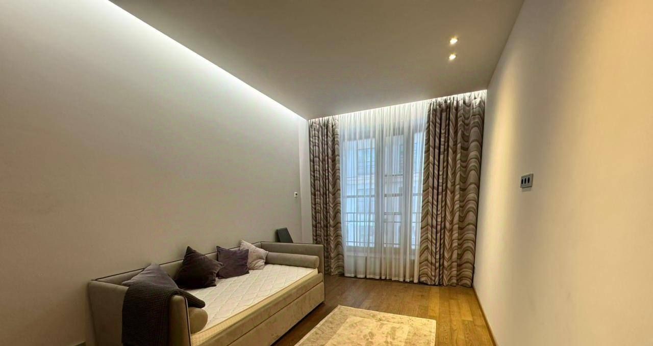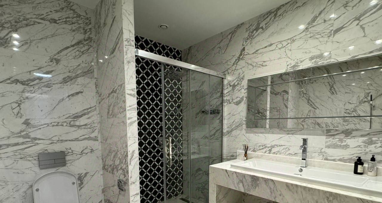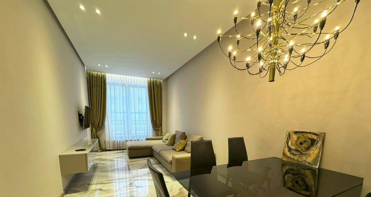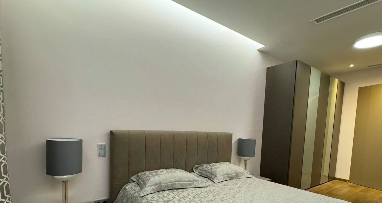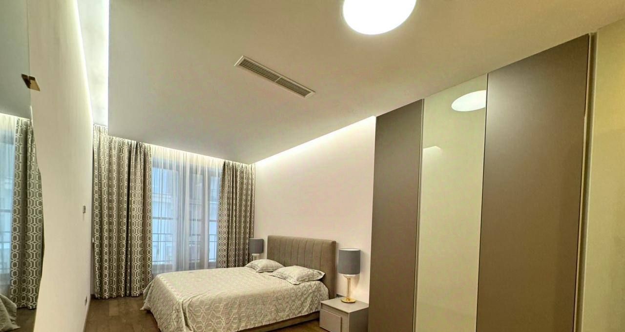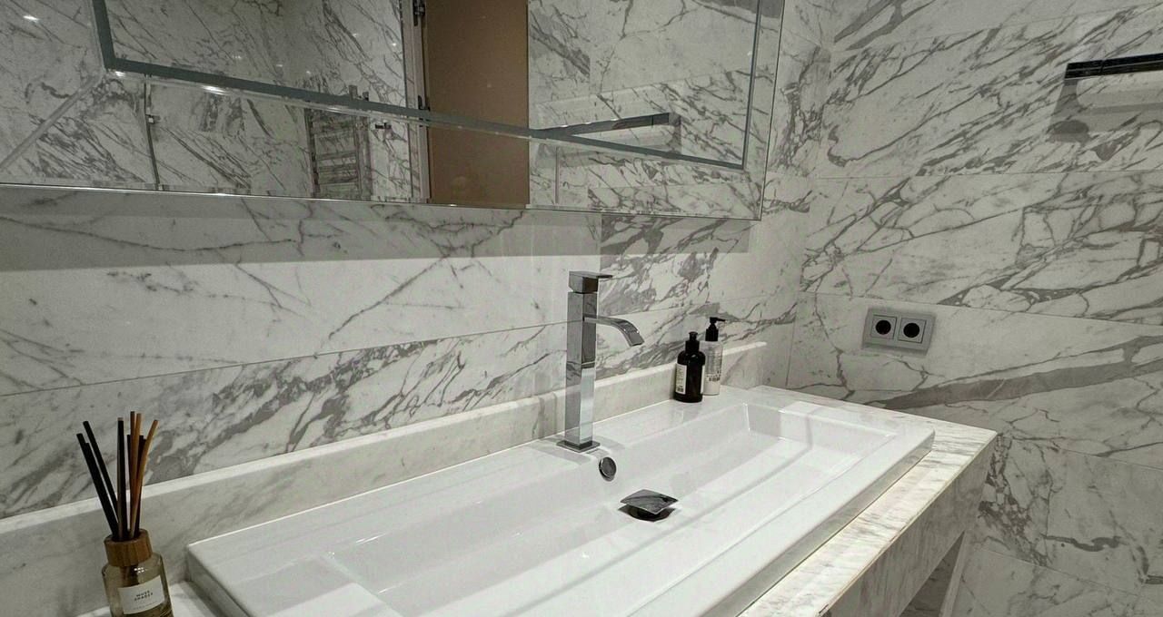 Общая площадь составляет 100 кв.м., в квартире 3 комнаты, 2 санузла, постирочная. В отделке использовались лучшие материалы. Квартира полностью мебелирована и готова к проживанию.