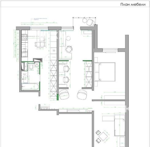 Большая комната площадью 17.8 кв.м разделена сдвижной остеклённой дверью на кабинет и студию (площадью 8.3 и 9.5 кв.м с выходом на застеклённый балкон). Это позволяет работать на удалёнке, заниматься учёбой или творчеством, не мешая друг другу.