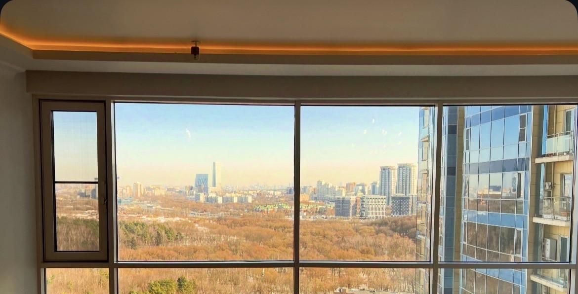 Видовая гостиная с окнами в пол и видом на лес, парк победы, Кутузовский проспект, Парк Победы и 6 высоток;