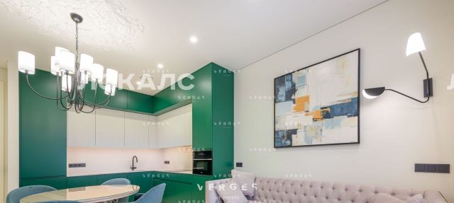 Планировкой предусмотрено: Кухня-гостиная, гостевой санузел с скрытым постирочным блоком, две уютные спальни, мастер санузел. Встроенная система хранения обеспечит порядок и максимальное использование пространства. Качественная техника и современные материалы обеспечат комфорт и удобство. Потолки высотой 3.1 метра, установлена система кондиционирования и теплых полов. Большие окна наполняют пространство светом и воздухом. Окна обращены во внутренний двор резиденции. Отличное место для проживания в комфорте.