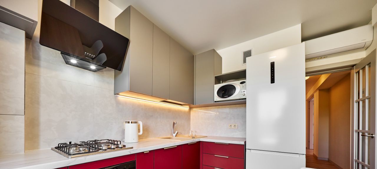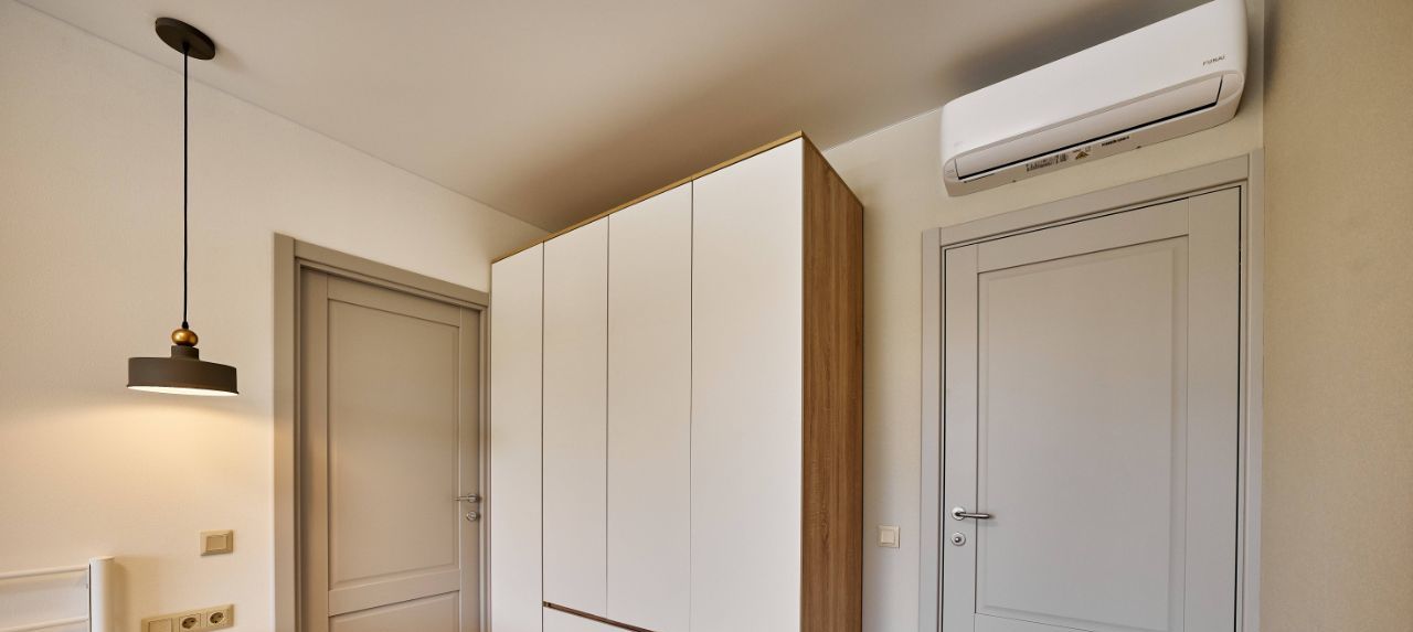 Установлены вместительные шкафы для хранения. Оборудованная спальня с большой кроватью. Раздельный санузел оборудован импортной сантехникой. Встроенная кухня с посудомоечной машиной. Плита газовая. Без балкона. Кондиционирование по всей квартире. Окна на две стороны дома. Интернет.