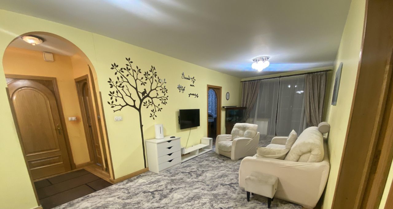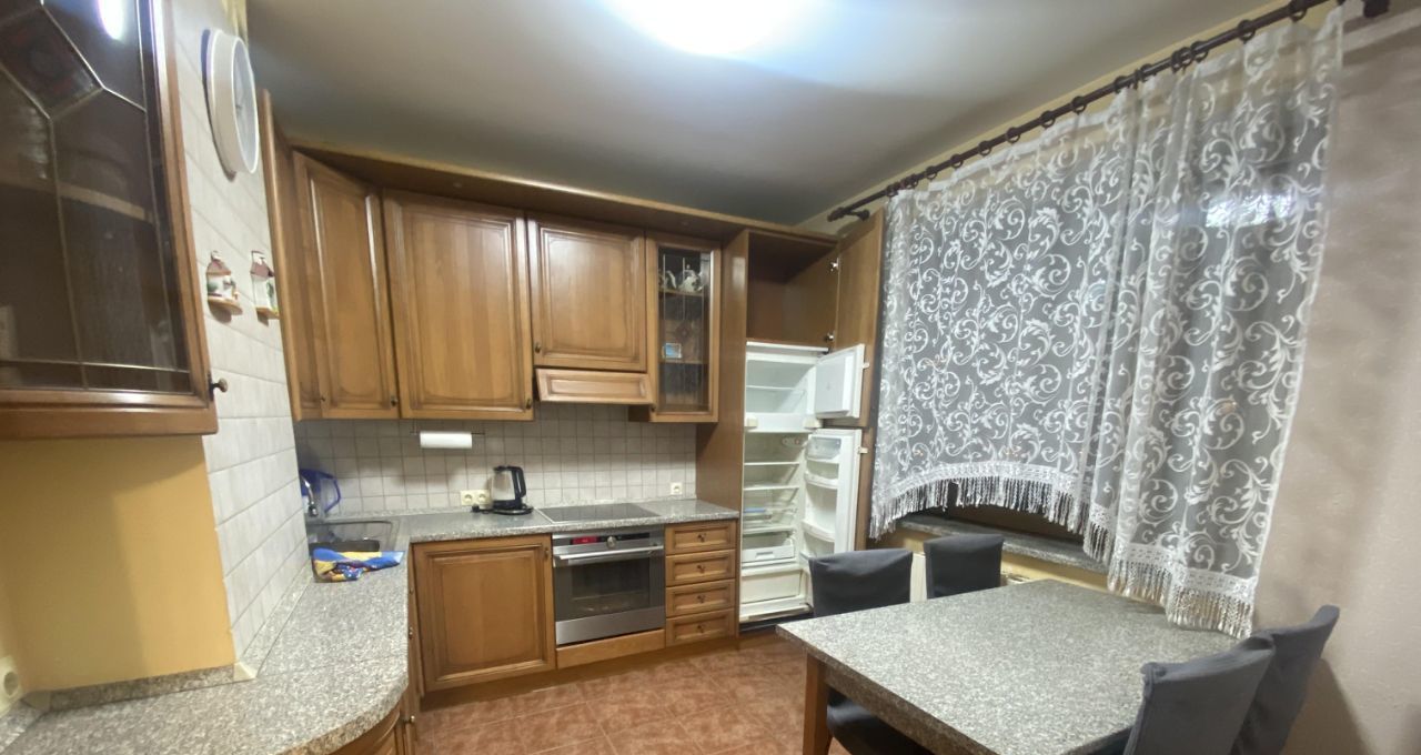 Сдаётся уютная 3-комнатная квартира в 6 минутах пешком от метро Озёрная. Общая площадь — 82 кв. м, жилая — 46 кв. м, кухня — 12 кв. м. Квартира расположена на 12-м этаже 17-этажного панельного дома 1993 года постройки. Высота потолков — 2.64 метра.