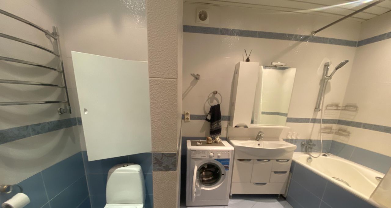 В квартире сделан косметический ремонт. Есть три лоджии, из окон открывается вид на тихий двор. Квартира полностью меблирована: мебель есть как в комнатах, так и на кухне. Из техники: кондиционер, холодильник, посудомоечная и стиральная машины, телевизор. Ванная комната оснащена ванной. Интернет подключён.