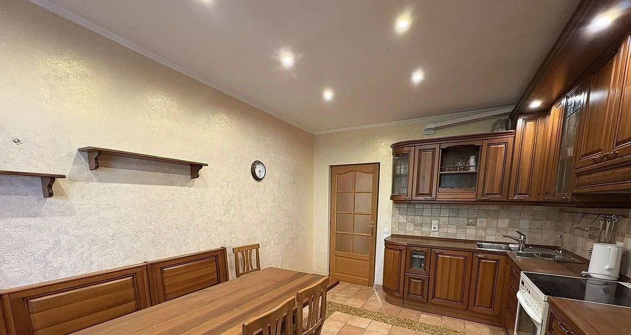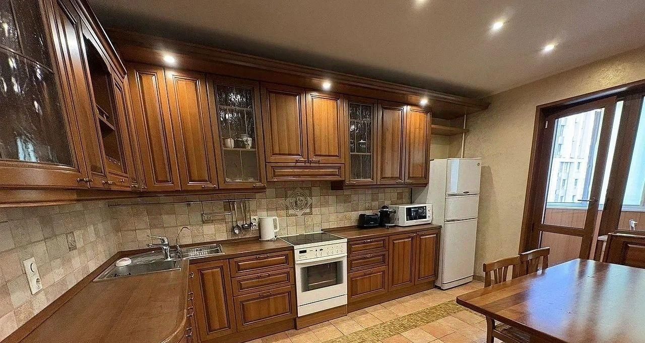 Предлагаем в аренду просторную и светлую трехкомнатную квартиру площадью 121,9 кв. м на 7 этаже 17-этажного кирпичного дома. Квартира находится в Москве по адресу: Никулинская улица, 27, всего в 4 минутах пешком от станции метро "Озёрная". Высота потолков составляет 2,8 метра, что придает пространству дополнительный объем и свет.