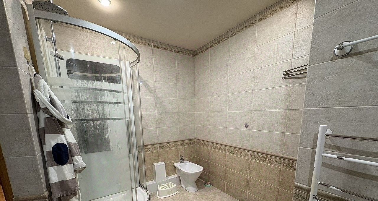 Квартира с дизайнерским ремонтом, полностью готова для комфортного проживания. В каждой комнате и на кухне есть необходимая мебель. Современная техника включает кондиционер, холодильник, телевизор и стиральную машину. Кухня площадью 12 кв. м отлично подходит для семейных обедов и ужинов. В квартире два совмещенных санузла, один из которых оборудован душевой кабиной. Из окон открывается вид во двор, обеспечивая тишину и спокойствие.
