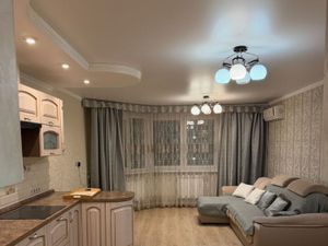Квартира недавно отремонтирована в стиле евроремонт. Внутри есть вся необходимая мебель и техника: кондиционер, холодильник, телевизор и стиральная машина. В кухне и комнатах есть современная мебель, а в ванной комнате — большая угловая ванна. Планировка квартиры удобная, санузел раздельный, есть балкон. Много шкафов для хранения вещей. В доме также есть интернет, что позволяет оставаться на связи и работать удаленно.