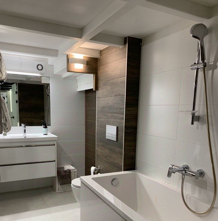 Аппартаменты выполнены в дизайнерском стиле с использованием высококачественных материалов. Просторная кухня оборудована всей необходимой мебелью и современной техникой: холодильник, посудомоечная машина и стиральная машина. Гардеробная. В комнатах также есть мебель, а в гостиной установлен телевизор. В квартире два санузла, один из которых совмещённый, а другой — отдельный, есть ванна и душевая кабина, что очень удобно.
