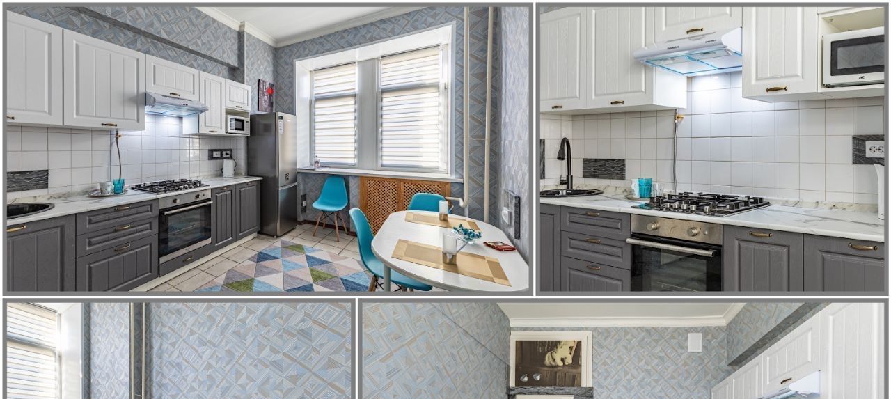 Пространство продумано до мелочей: современная мебель на кухне и в комнатах, уютная гостиная зона.