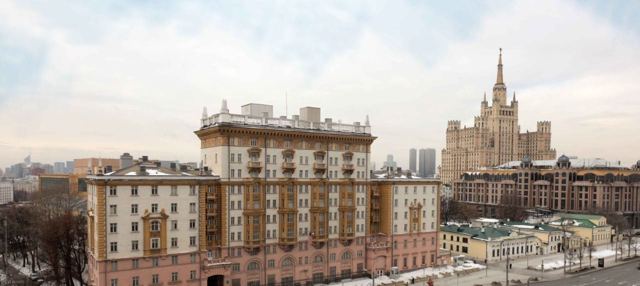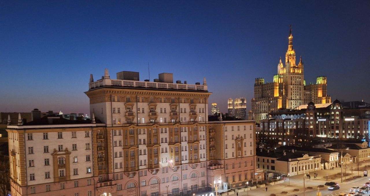 Фасадный сталинский дом напротив Американского посольства, дом отремонтирован.