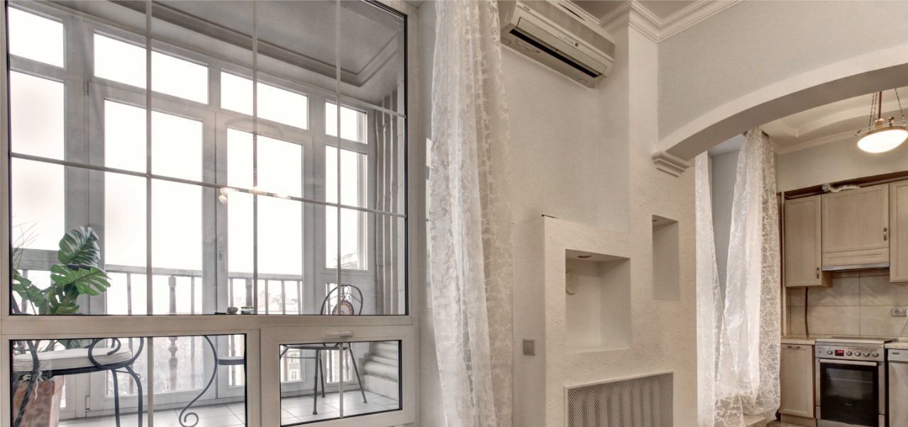 Панорамный вид на "Белый дом". Все окна квартиры выходят на улицу.
