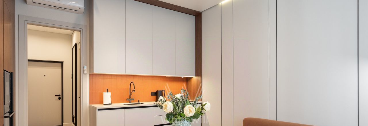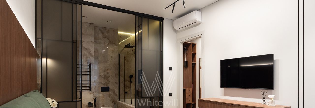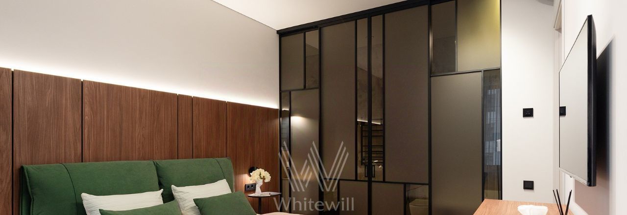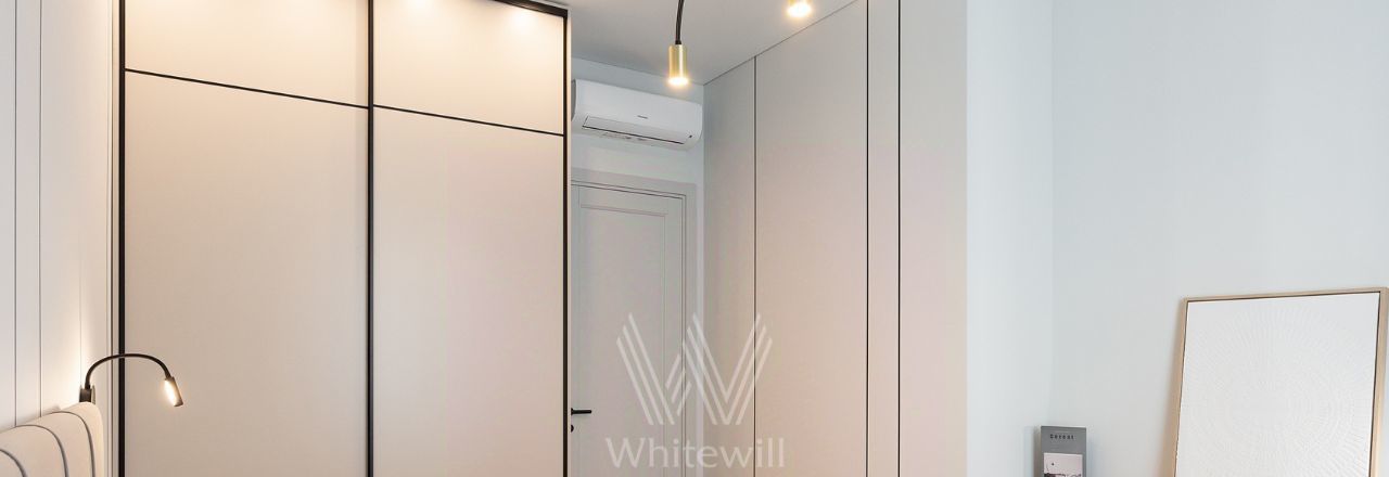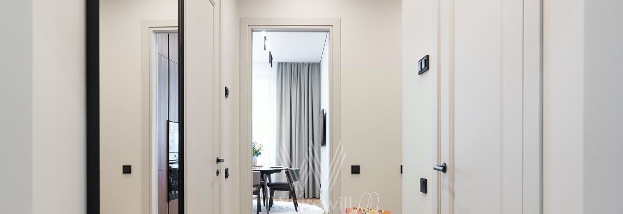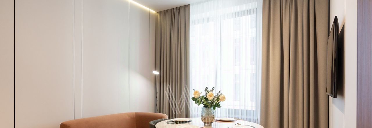 Квартира с 2 спальнями в комплексе бизнес-класса "Серебряный фонтан" в Алексеевском районе. Квартира общей площадью 71 м² расположена на 7 этаже. Выполнена дизайнерская отделка в современном стиле. Интерьер оформлен в светлых тонах с яркими акцентами. Спланирована кухня-гостиная, мастер-спальня с ванной комнатой, гардеробной и выходом на лоджию, вторая спальня, санузел с душевой, гардеробная, прихожая. Квартира полностью меблирована и оборудована бытовой техникой. Из окон открывается вид во внутренний двор-парк.