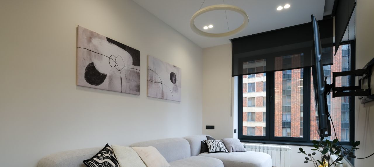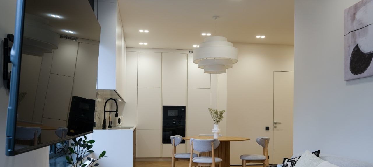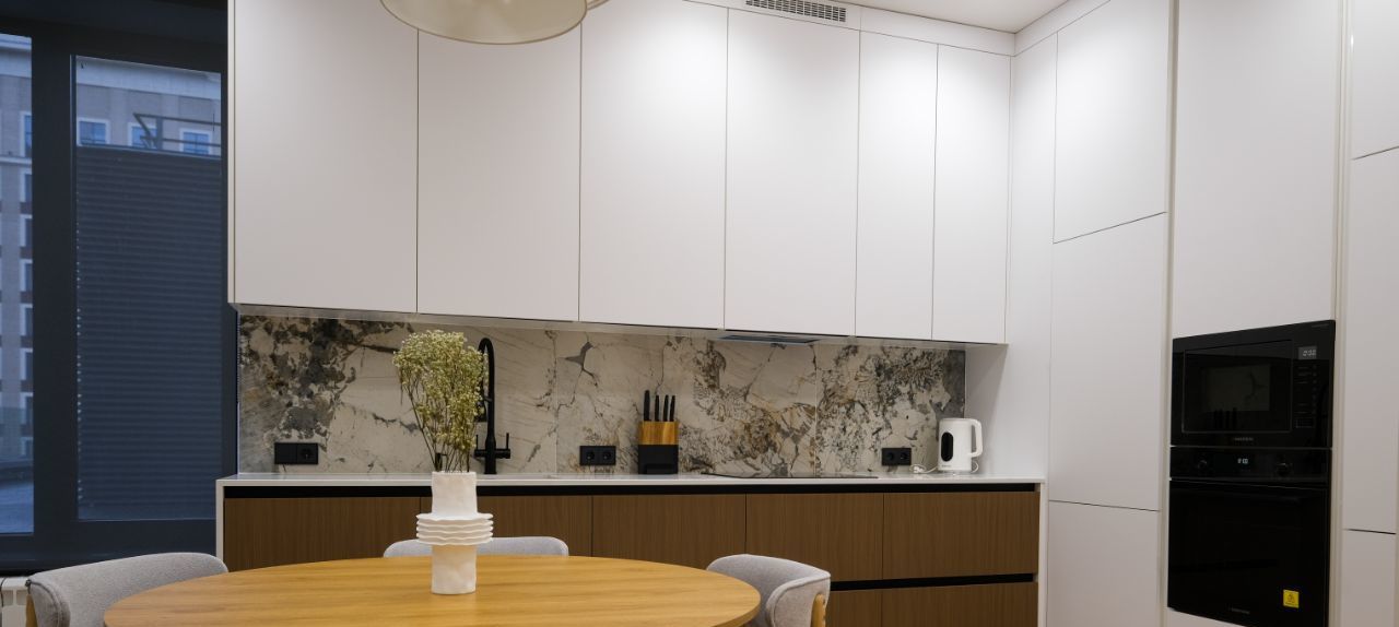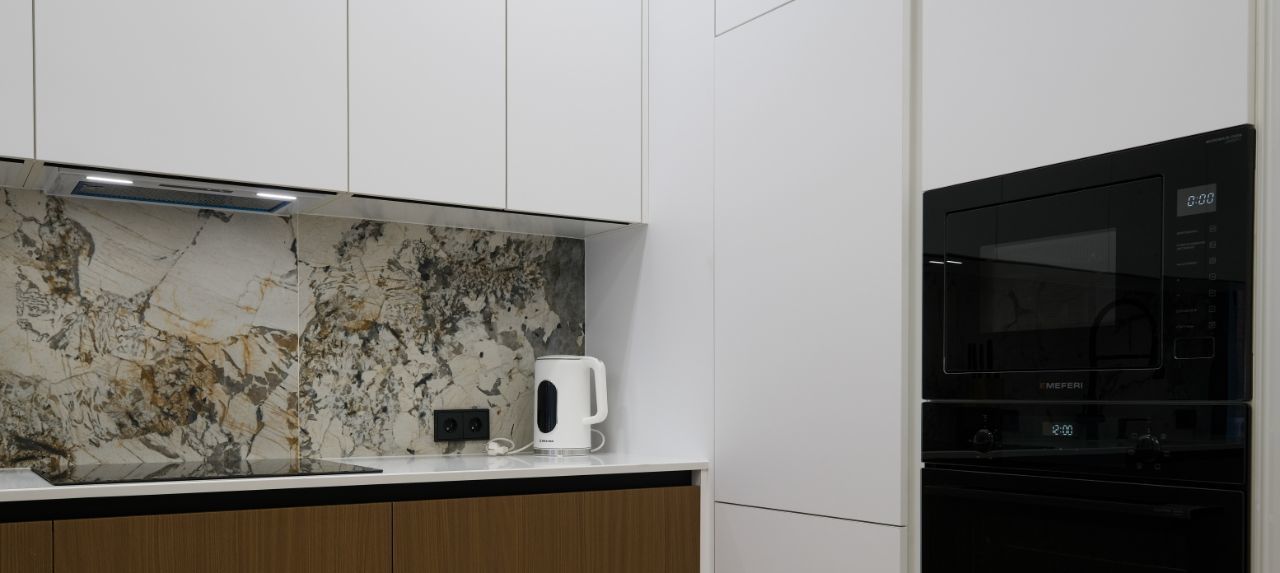 В квартире есть всё необходимое для комфортного проживания: стильная мебель в комнатах и на кухне, современная бытовая техника, включая кондиционер, холодильник, телевизор, стиральную и посудомоечную машины. Планировка продумана для вашего удобства — два совмещённых санузла, в одном из которых установлена ванна, а в другом — душевая кабина. Окна выходят во двор, поэтому в квартире тихо и уютно. Панорамные окна в гостиной в эксклюзивном формате есть ТОЛЬКО у этой квартиры - с выходом на террасу крышы дома, где вскоре будут рзамещены растения и обустроена личная Лаунж-зона!