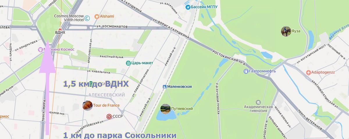 15 минут пешком до парка Сокольники и до ВДНХ.