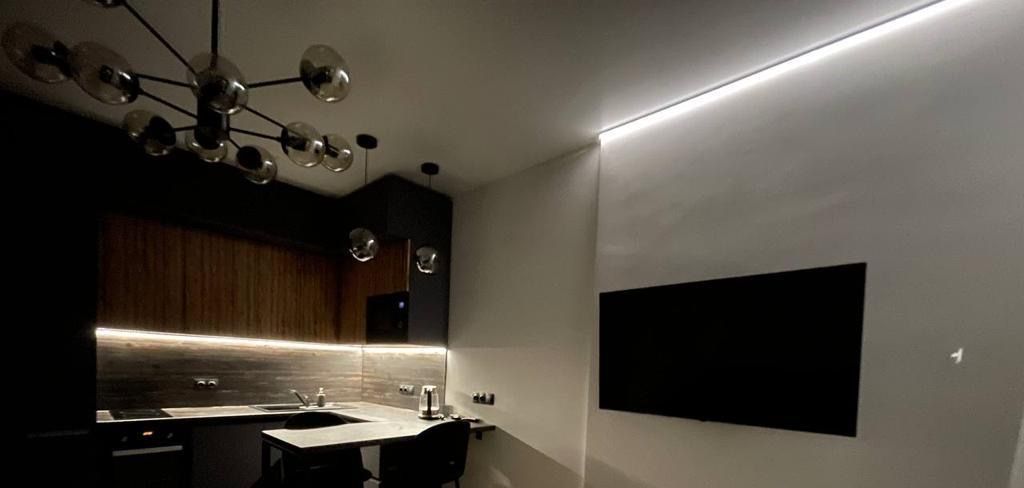 Он качественный: сделана дополнительная шумоизоляция, качественная европейская сантехника, подогрев полов в ванной и на кухне, стоит гребёнка (напор воды всегда стабильный и сильный), есть датчики отключения воды при затоплении, продумано очень много световых решений для создания лаунжевой, уютной и романтичной атмосферы.