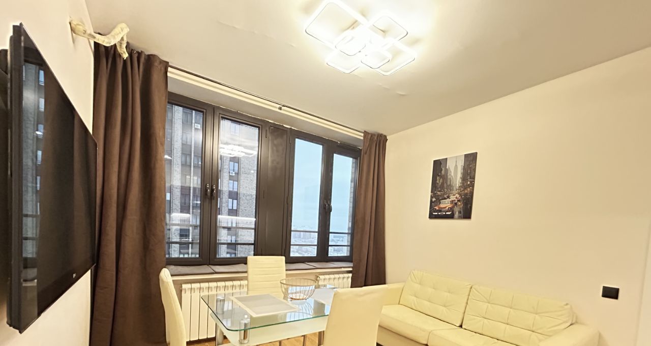 Сдается видовая квартира ЕВРО 3ка в ЖК Савеловский. В отличном состоянии, полностью оборудована мебелью и всей бытовой техникой. Кухня гостиная оборудована кухонным гарнитуром, обеденная зона с диваном и телевизором, в одной спальне кровать, шкаф, телевизор и выход на лоджию, во второй спальне диван, шкаф и рабочий стол, в прихожей вместительный шкаф купе.Длительная аренда