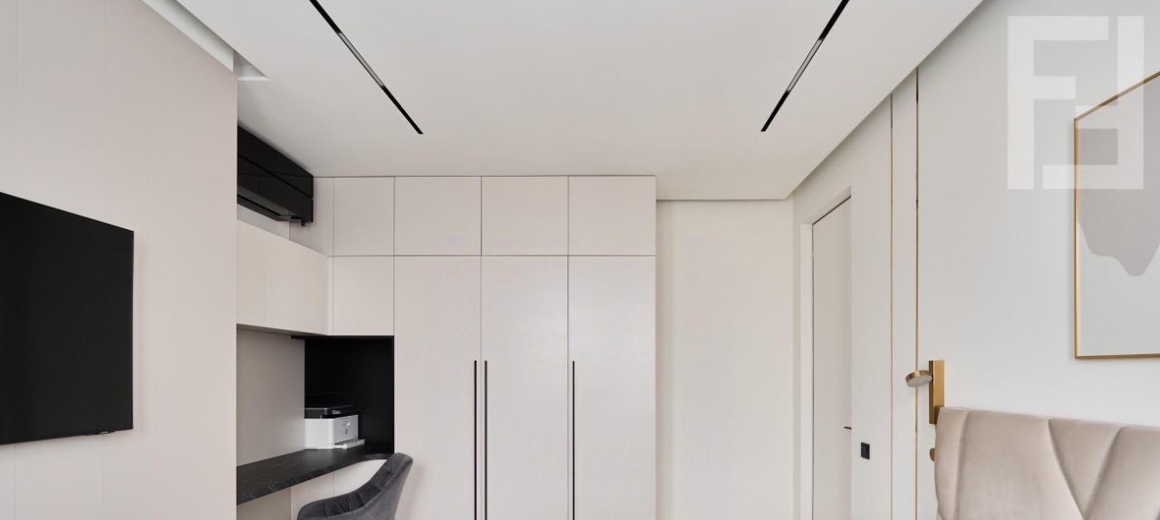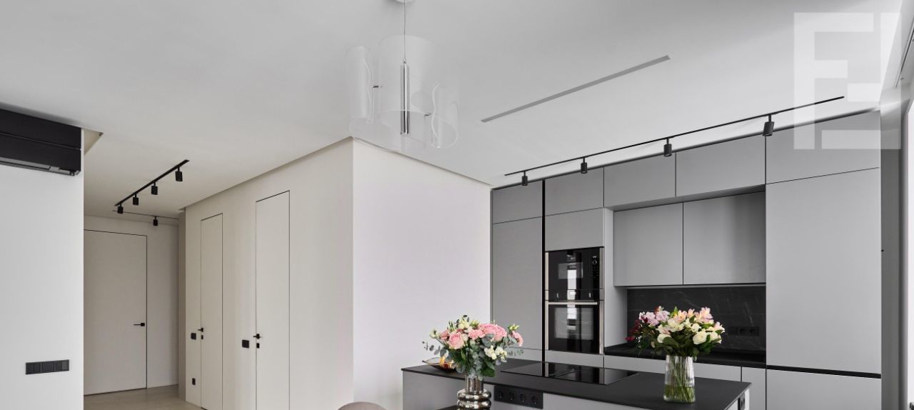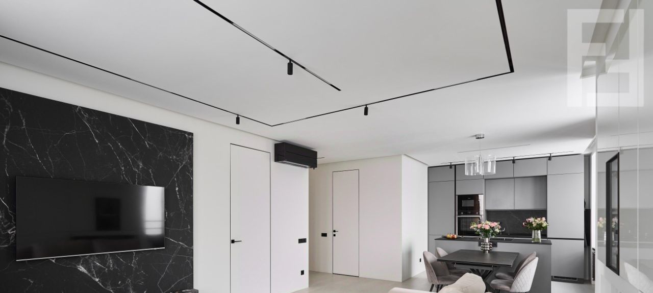 Трековые системы и регулировка температуры света позволяют создавать разную атмосферу — от мягкого вечернего освещения до яркого рабочего.
