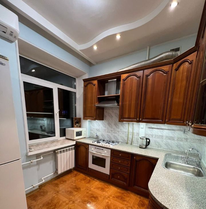 ЗВОНИТЬ. Предлагается ТИХАЯ, уютная квартира в сталинском доме. Окна выходят в тихий зеленый двор. Есть ПАРКОВКА во дворе. Квартира в Отличном состояние, пол плитка паркет, стены обои, сур, кухня, гостиная, спальня, все оборудовано мебелью и техникой. Положительный собственник.