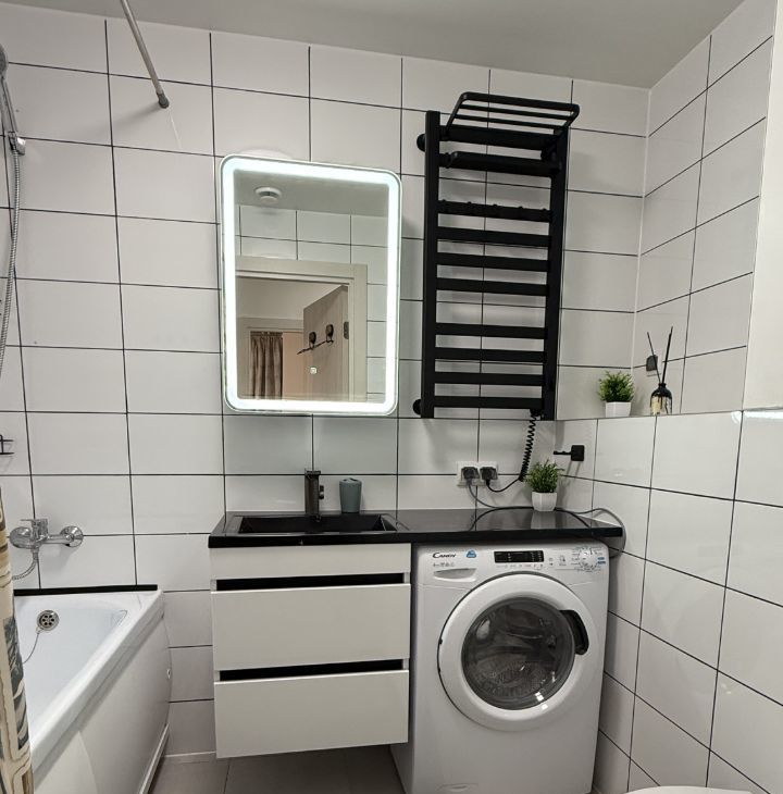 Квартира полностью оборудована мебелью и бытовой техникой.