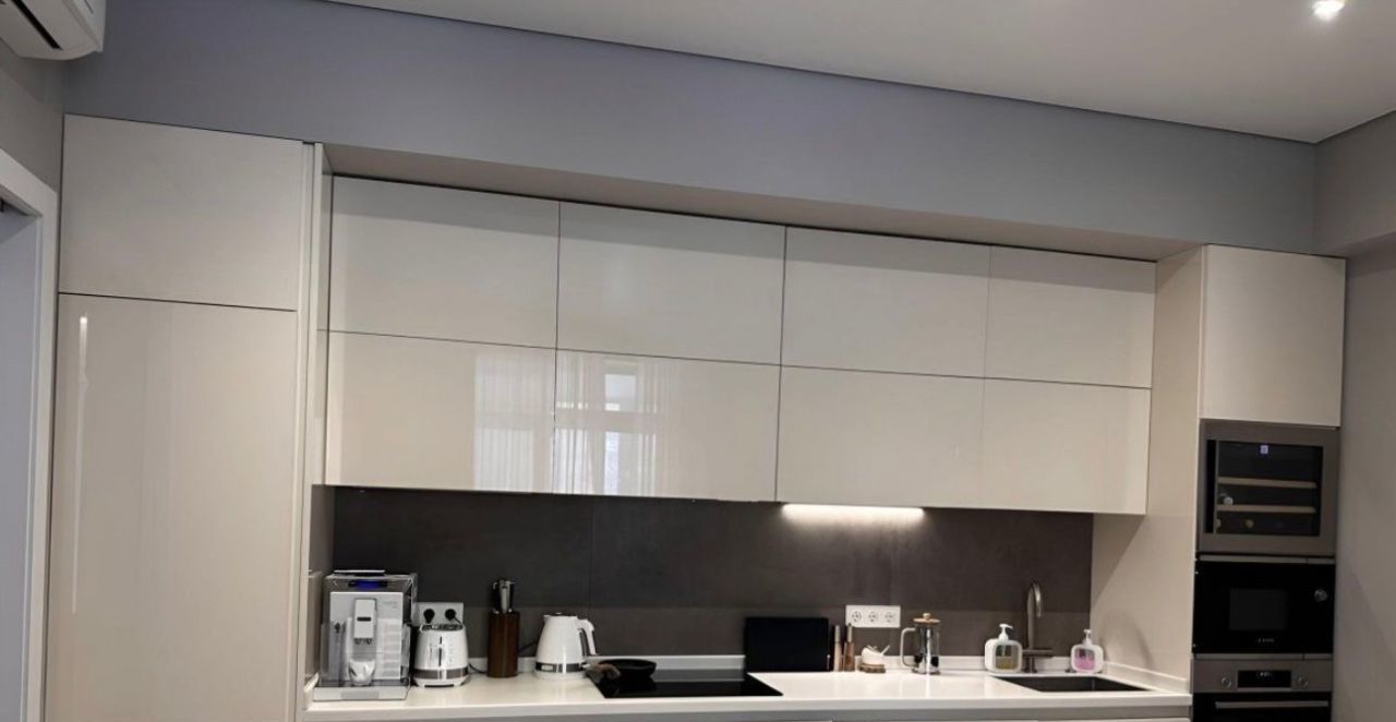 Площадь 103 м2 вместе с лоджиями. Квартира большая, квадратные метры распределены полезно. Кухня-гостиная (21 м2) с балконом и окнами в пол + спальня с гардеробной(13 м2) балконом и окнами в пол+две детских комнаты(18 и 16 м2). Два полноценных сан узла. в одном установлена большая ванна, в другом душевая кабина. Квартира зонирована таким образом, что детские комнаты находятся рядом друг с другом и в дальней части квартиры. В квартире много встроенной мебели. На кухне техника BOSH . Ремонт сделан 3 года назад, материалы все дорогие (Испания/Италия).
