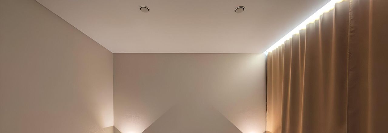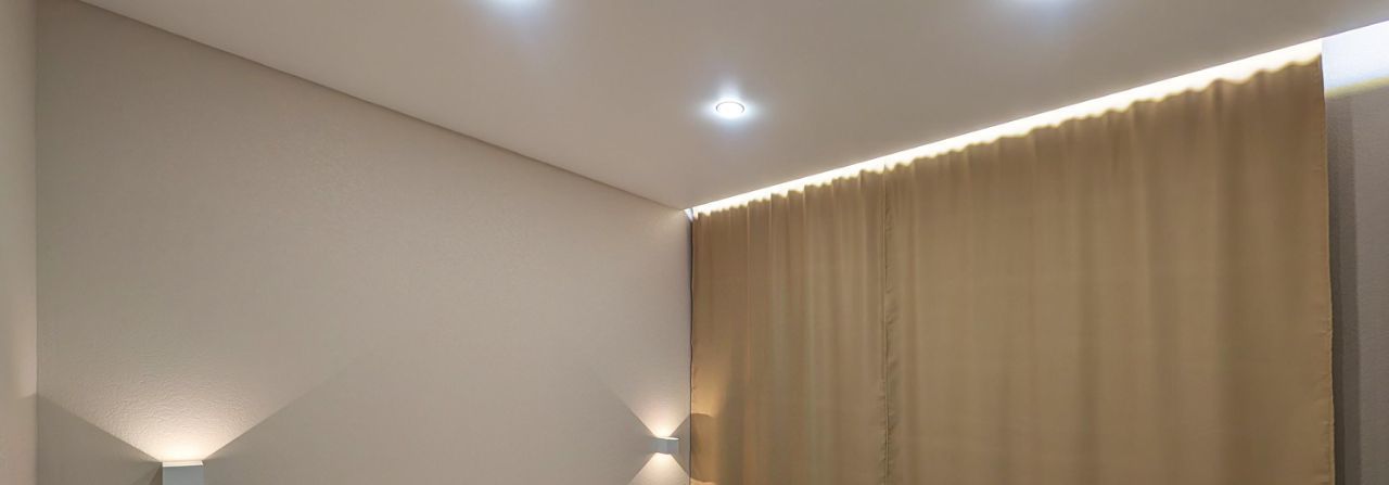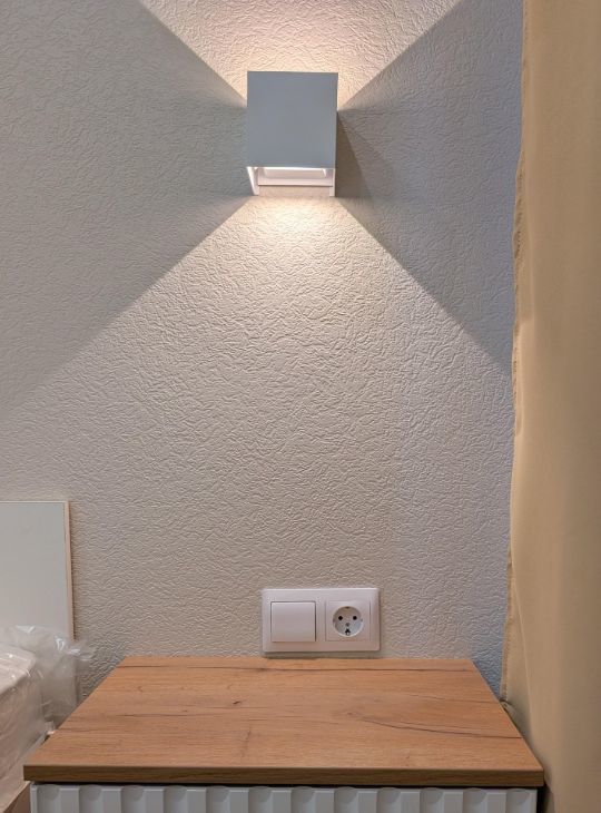 Прикроватные тумбы, индивидуальное освещение над каждой тумбой.
