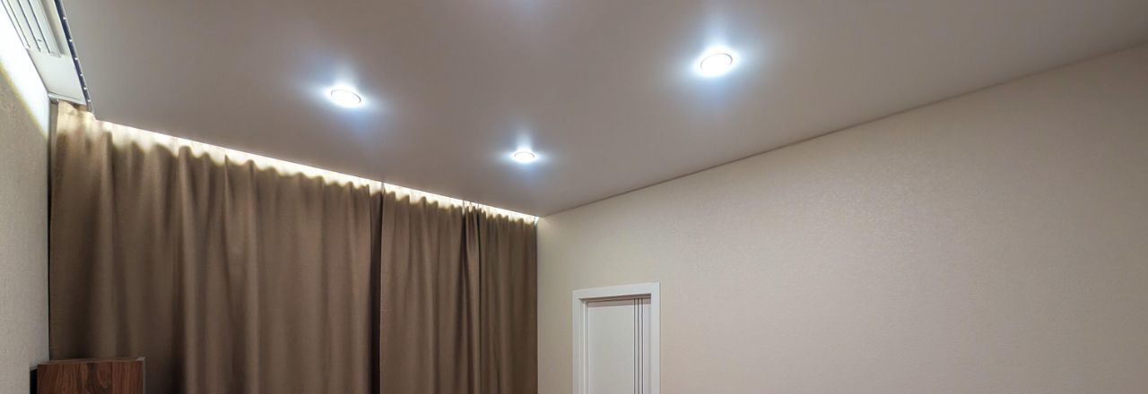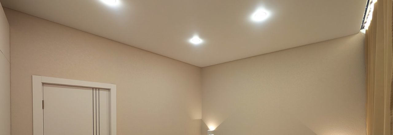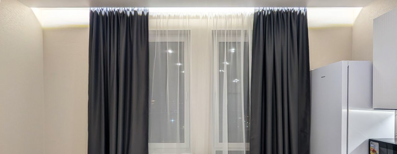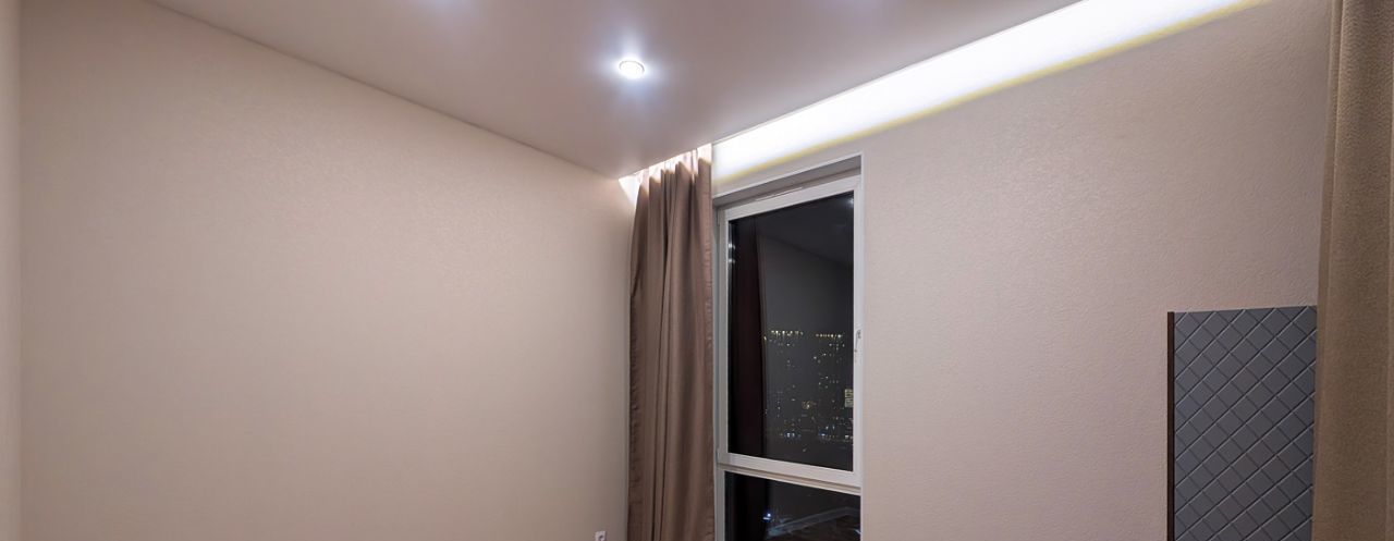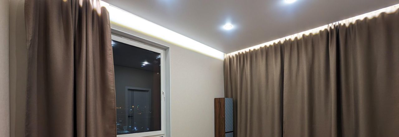 Отделанна в светлых тонах, с подсветкой, панорамными окнами, которые выходят в обе стороны, высокий этаж, вид из окна ни в окна соседей !!!