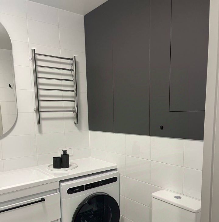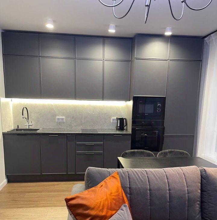 Техника: духовой шкаф, варочная панель, микроволновая печь, посудомоечная машина, 3 кондиционера, стиральная машина, 2 телевизора, пылесос, утюг. 3 вместительных шкафа.