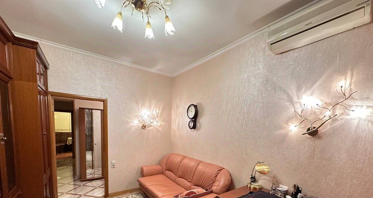 ==ЛОТ 223957 ==Сдам отличную трех комнатную квартиру, в добротном Сталинском доме. Три комнаты, меблированные как спальня, кабинет и гостиная (плюс гардеробная и два застекленных балкона). Качественный ремонт, есть все необходимое для комфортного проживания (два холодильника, три кондиционера, стиральная машина, газовая плита и колонка, небольшой сейф и т д). Две входных двери, одна бронированная. Въезд во двор под шлагбаум, есть места для парковки. Оперативный показ.
