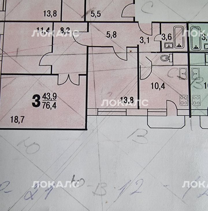 3-к кв. Москва Новороссийская ул., 34 (78.0 м²)