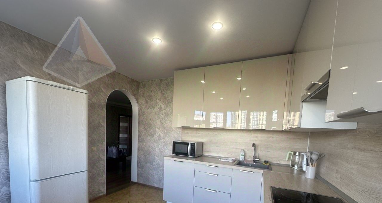 Полная комплектация: новая кухня со встроенной техникой (посудомойка, плита, холодильник), стиральная машина, ТВ 50", диван, спальный гарнитур, шкафы-купе, Wi-Fi, электронный замок по отпечатку пальца, большой санузел с ванной/джакузи.