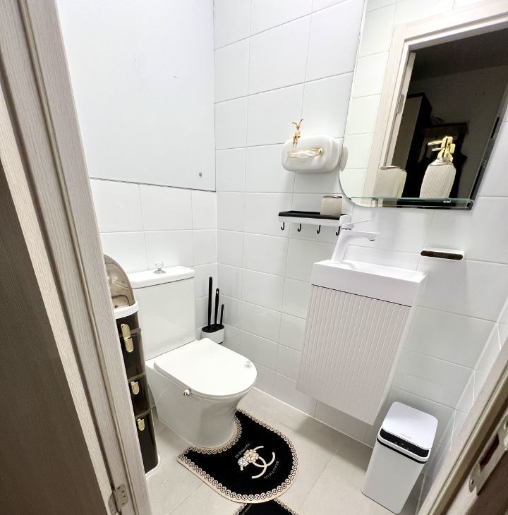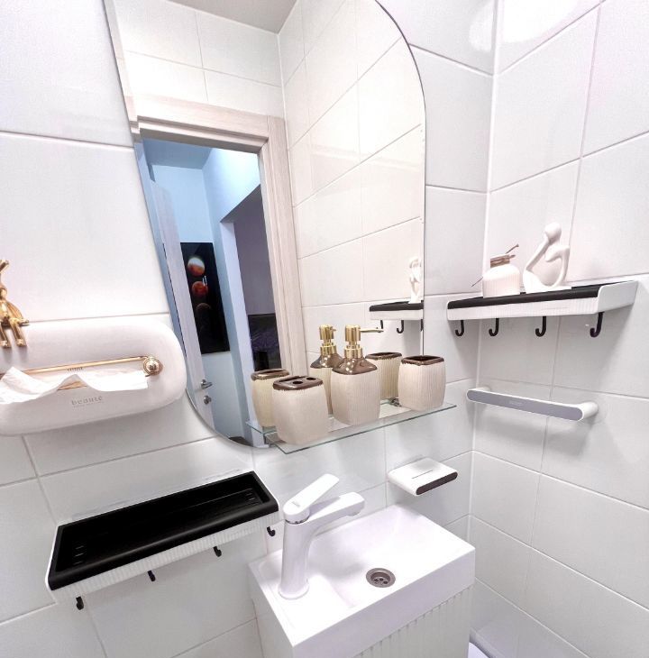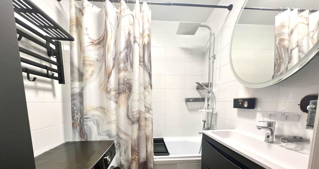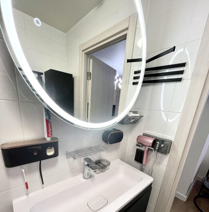 В санузлах полный комплект ванной мебели, полноразмерная стиральная машина с функцией сушки, автоматические аксессуары для ванной.