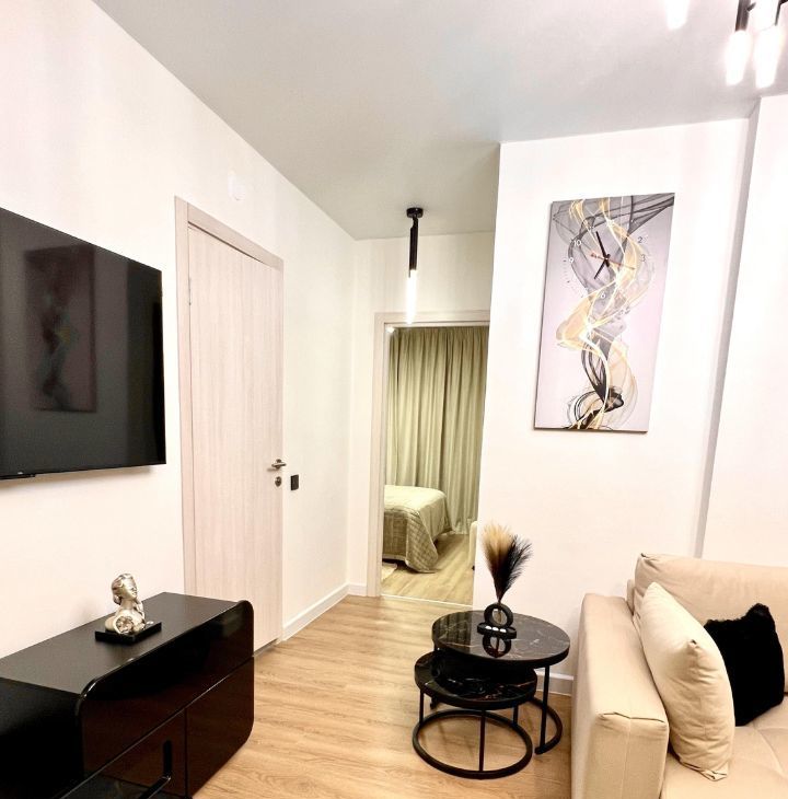 В гостиной - смарт ТV - диагональ 55 дюймов, Wi-Fi роутер, интернет.