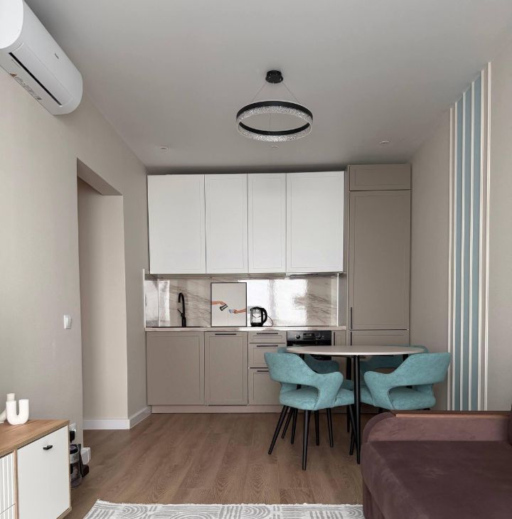 В квартире сделан современный дизайнерский ремонт, укомплектована новой техникой, из квартиры открывается потрясающий вид из окна.