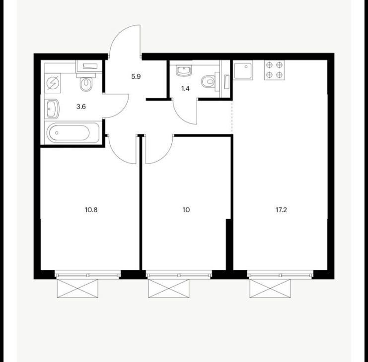 3-к кв. Москва Очаковское ш., 5к2 (49.0 м²)