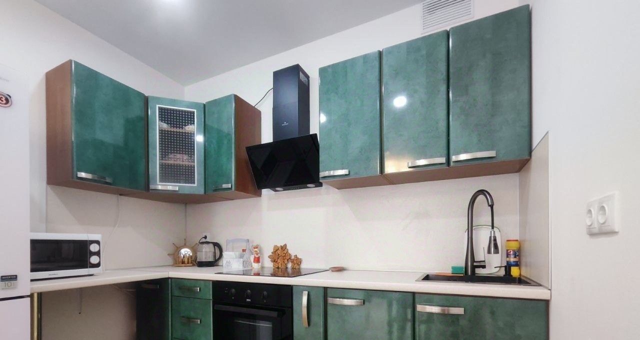 Оборудована всей необходимой мебелью и современной техникой:холодильником, духовой шкаф, варочная панель, посудомоечная и стиральная машинка.