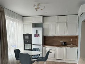 В квартире выполнен качественный ремонт, вся мебель и техника абсолютно новые. Из техники имеется - кондиционер, смартТВ (55"), стиральная машина, встроенные духовой шкаф, микроволновая печь, посудомоечная машина, вытяжка, плита (2 комфорки). Имеется WiFi.