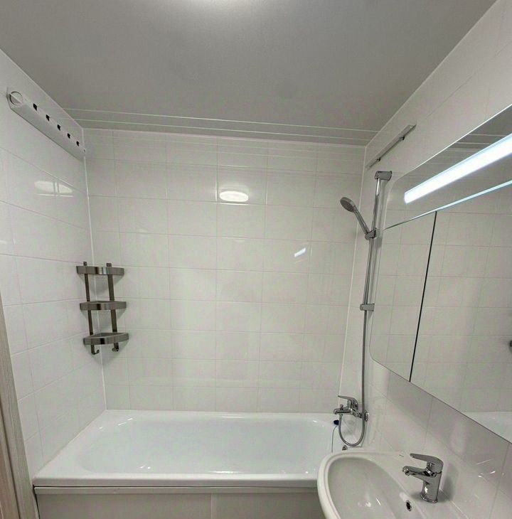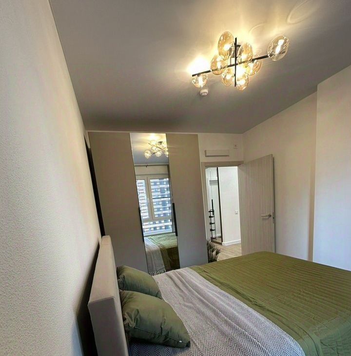 The apartment has been renovated, so everything looks very stylish and modern. The kitchen and the room have all the necessary furniture. Appliances also include a dishwasher, induction, oven, 2-chamber refrigerator, 55 TV, air conditioning, washing machine. The apartment has two bathrooms, equipped with a bathtub.