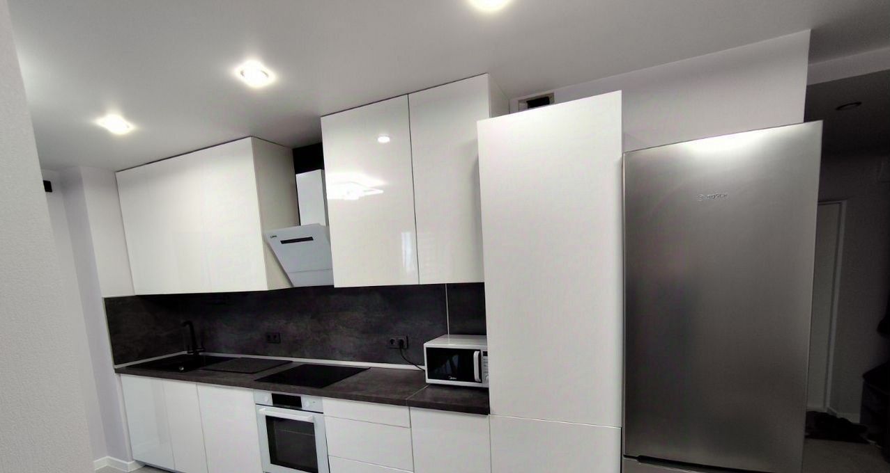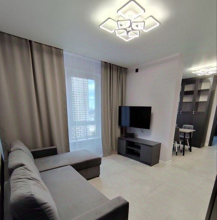 В квартире сделан евроремонт, поэтому всё выглядит очень стильно и современно.