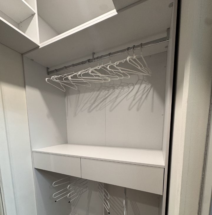 - гардеробная- Встроенные полки, вешалки и ящики — хватит места для всей семьи.