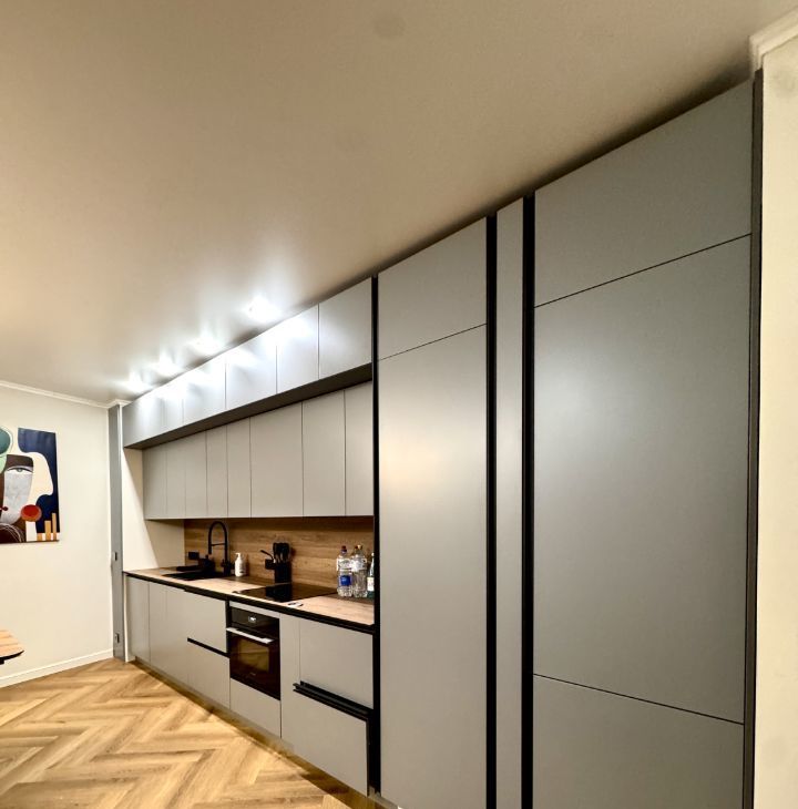 - Кухня-гостиная в едином пространстве: Открытый план в 35 м? — сердце квартиры! Современная кухня , полностью оборудованная: индукционная плита, духовка, холодильник, посудомойка и вся необходимая утварь. Гостиная зона с мягким диваном, который трансформируется в две стороны и ТВ " место для семейных ужинов или просмотра фильмов.