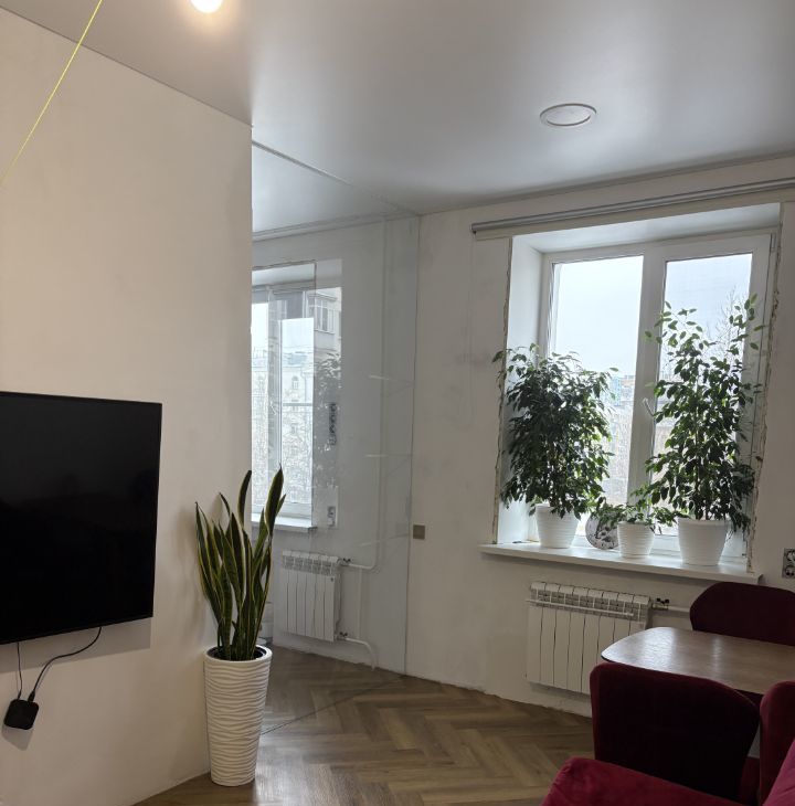 С обеих сторон окна выходят в тихий двор. Благодаря новым пластиковым окнам и установленной в каждой комнате системы фильтрации воздуха, в квартире хорошая звукоизоляция и свежий воздух.