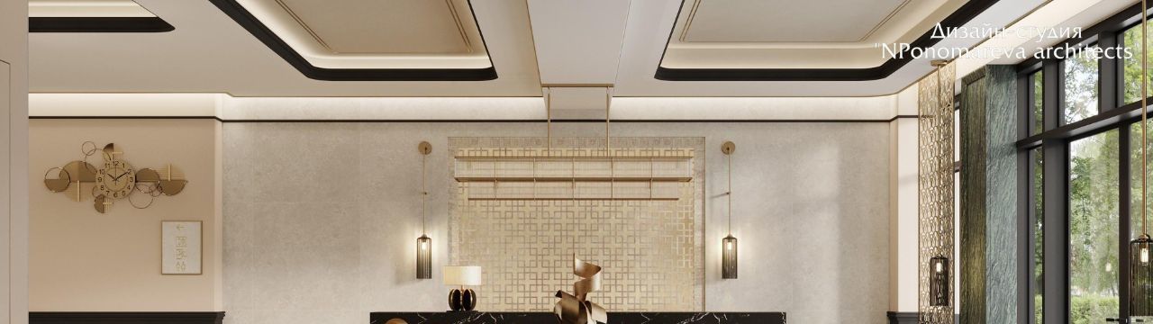 Высокие двери, гипсовая лепнина натуральный паркет цвета "темный шоколад". Сантехника премиальных брендов - Tece, Laufen, Villeroy & Boch, Lemark.
