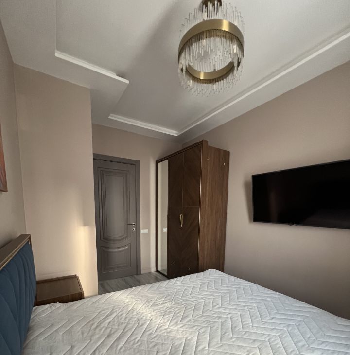 В квартире выполнен качественный ремонт, дорогая мебель и вся необходимая техника (встроенный холодильник, электрическая плита, духовой шкаф, микроволновая печь, стиральная и посудомоечная машины). В спальне кровать King size, в детской - две кровати, кухня-гостиная с современным кухонным гарнитуром, обустроенной обеденной зоной и зоной отдыха, полноценная гардеробная с продуманной системой хранения - все это позволит максимально комфортно разместиться семье с детьми.