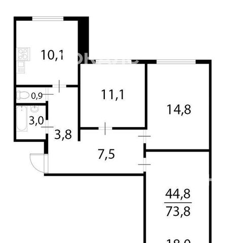 3-к кв. Москва Осенний бул., 20К2 (74.3 м²)