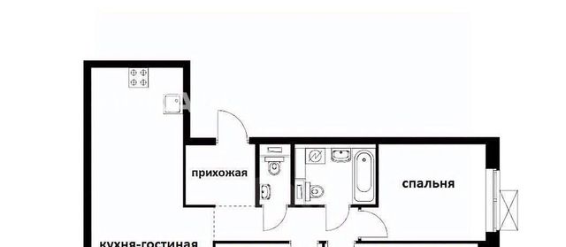 2 санузла (гостевой: унитаз, умывальник; основной: унитаз, раковина, ванная).